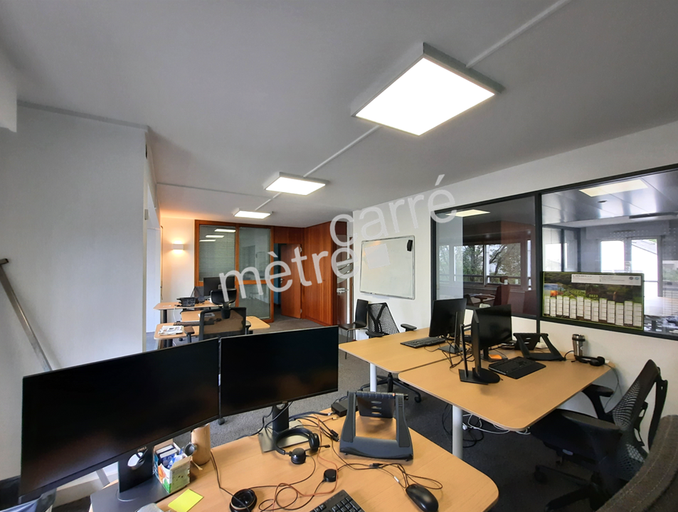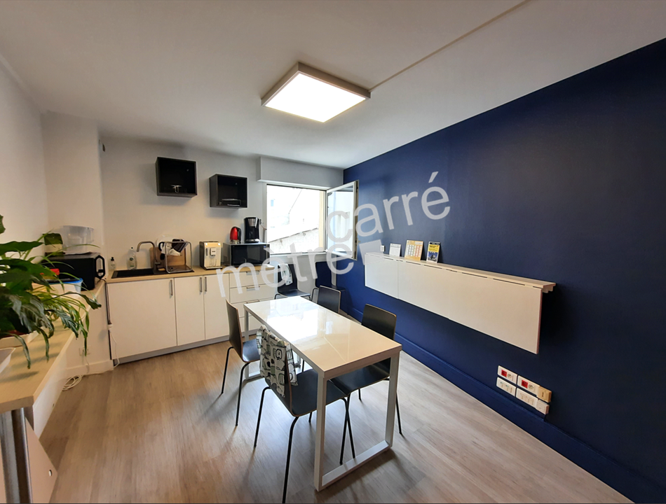 Surface composée d’un espace d’accueil, 8 à 10 bureaux cloisonnés sur l’ensemble du plateau, une salle de réunion et espace kitchenette. Nombreux placards. Les sanitaires sont situés sur le palier.